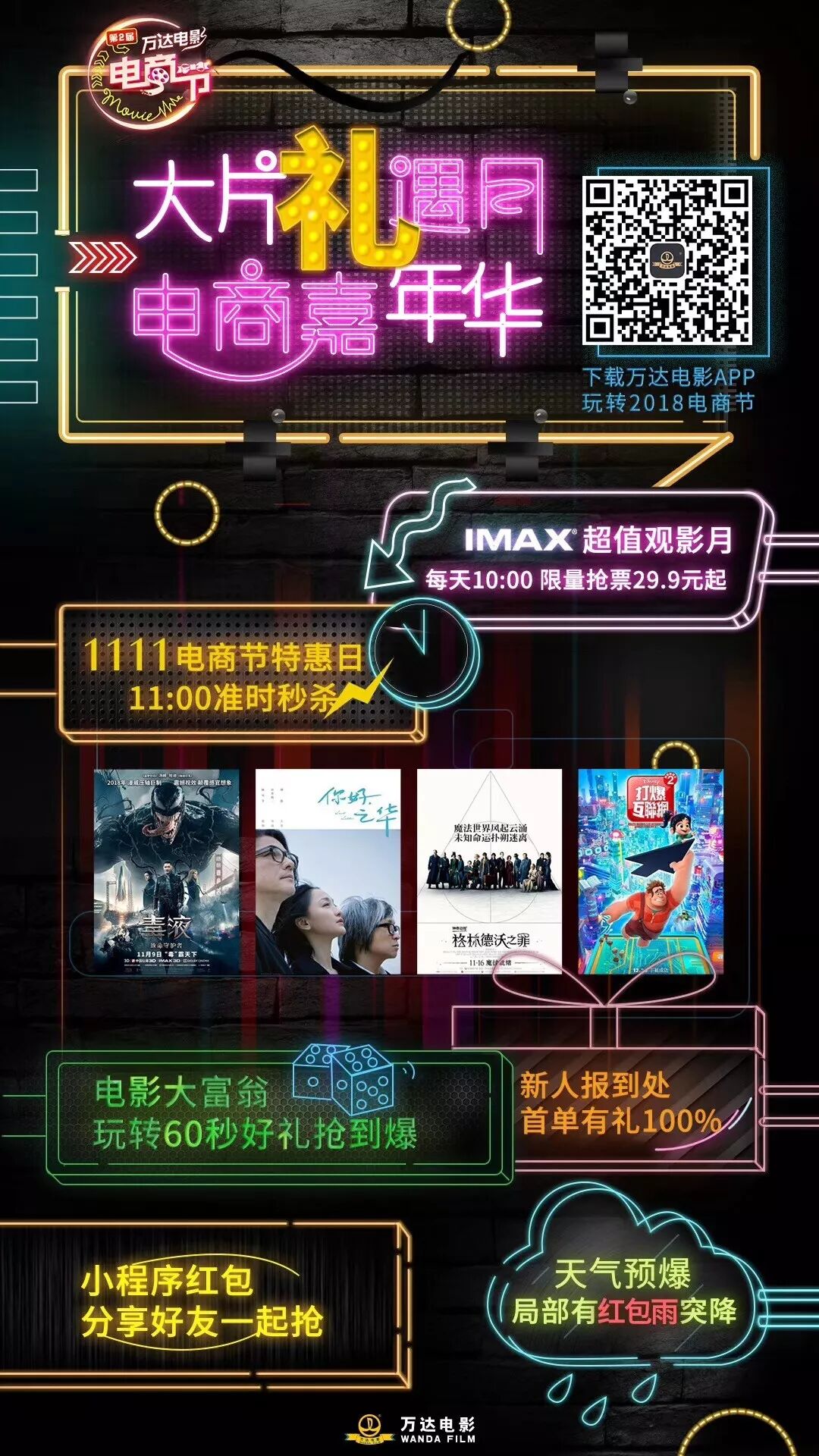 通过万达电影小程序观影得特惠红包,分享好友获取IMAX超值福利!