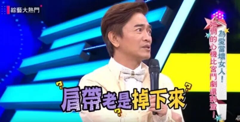 女人心海底针,在《综艺大热门》的节目中,吴宗宪表示如果女明星或者是有女人在大众的面前故意动作幅度很大,遇到了这种肩带会掉下来的情况,真是让不少人感到头疼尴尬的事情啊!节目中他的表情相当尴尬。