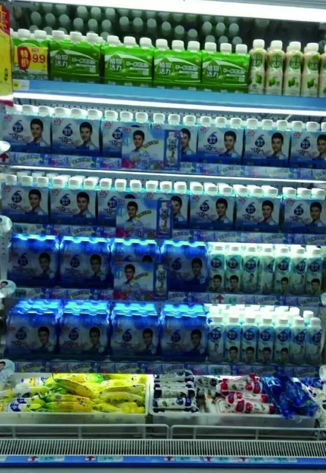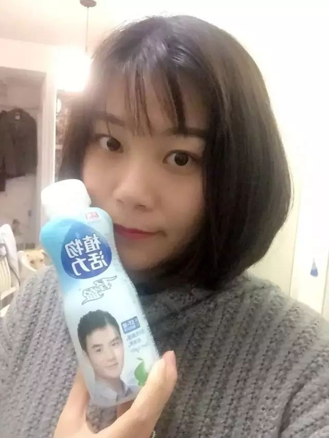 “今天终于有时间去超市啦,第一次做粉丝,第一次买有明星的产品,还是略羞涩的,看下四下无人,把照片转正过来拍照,拿了一瓶后,把后面的摆到前面来,打卡成功