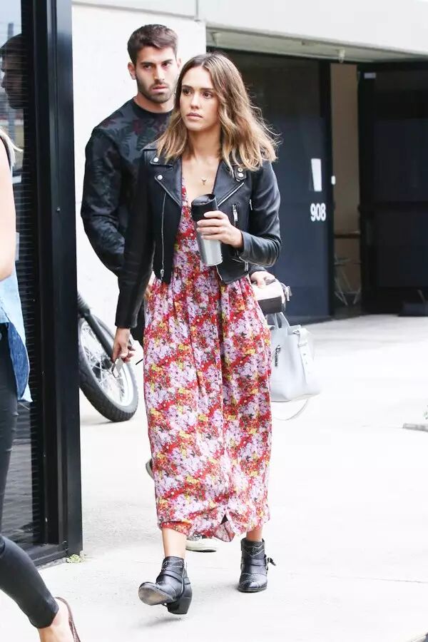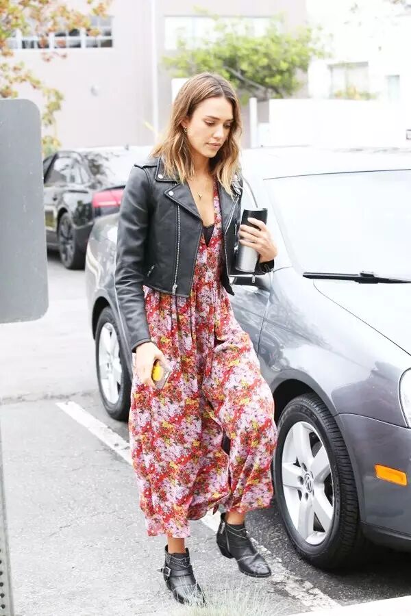 —————● 印花连衣裙+机车皮衣 Look ●—————