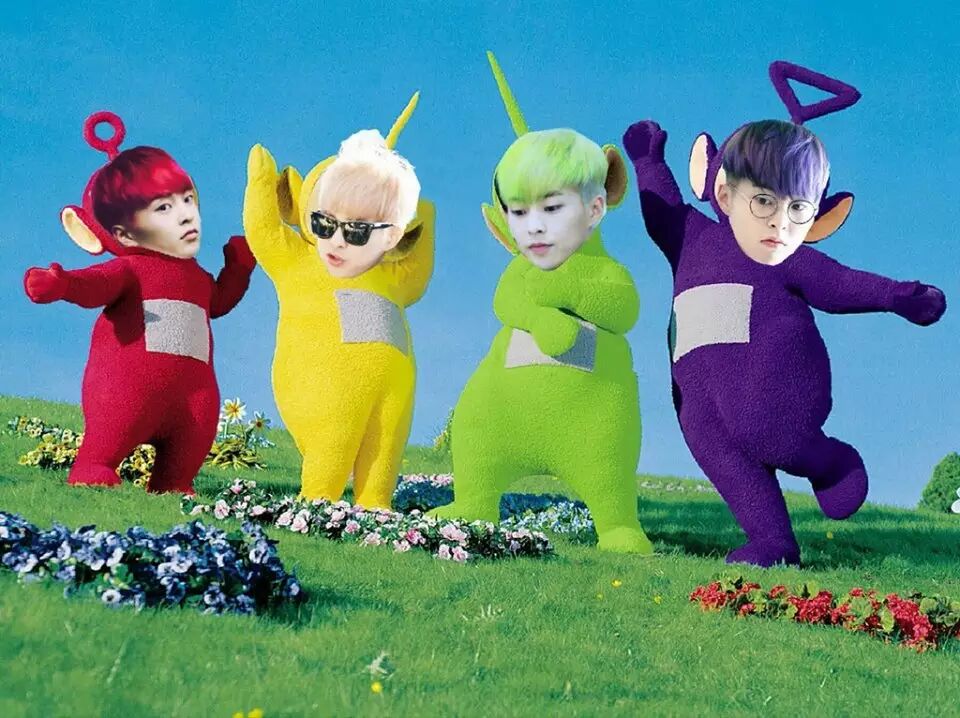 除了伯贤外,近几个月频繁变换发色的还有「大哥」XIUMIN,而当中最引人注目的发色有四种,有粉丝突发奇想,发现这四种发色串在一起,刚好和《天线宝宝》四位主角的颜色一样,这样的异曲同工是不是很奇妙?