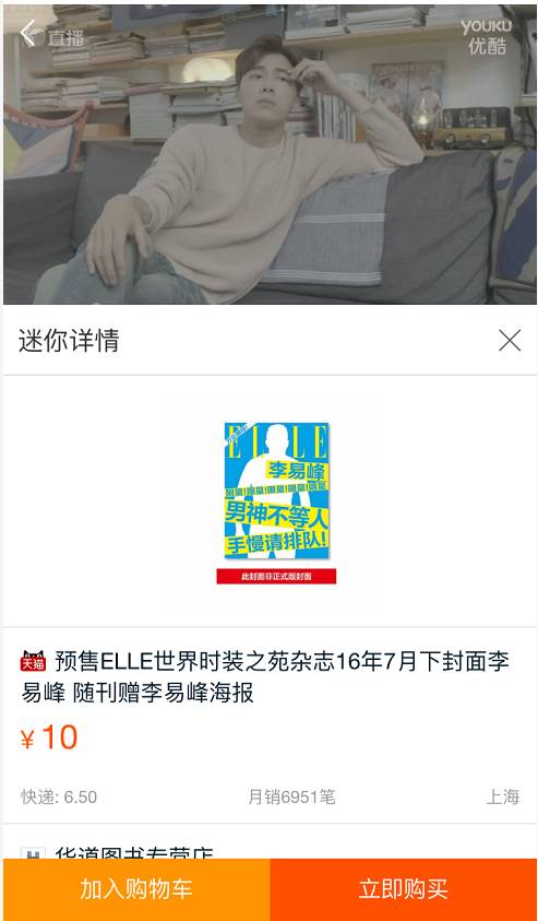 此次,ELLETV联手优酷,成功直播“突袭”李易峰,仅仅只有15分钟的直播活动,但对于视频电商来说,无异于是一种新的开拓与尝试。明星以及时尚杂志所吸引的粉丝具有一定的粘合性与契合度,定位十分精准,更容易产生消费是冲动,变现能力更加强大。