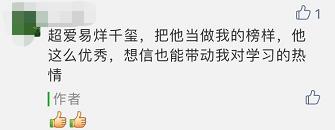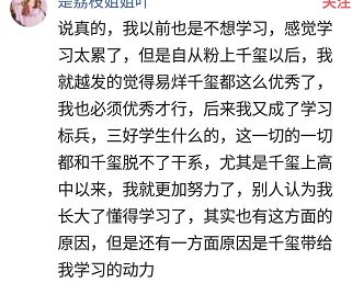 易烊千玺的感染力惊人,相信还有不少同学受到了他的鼓舞,在学习的道路上,越挫越勇,努力前行着……