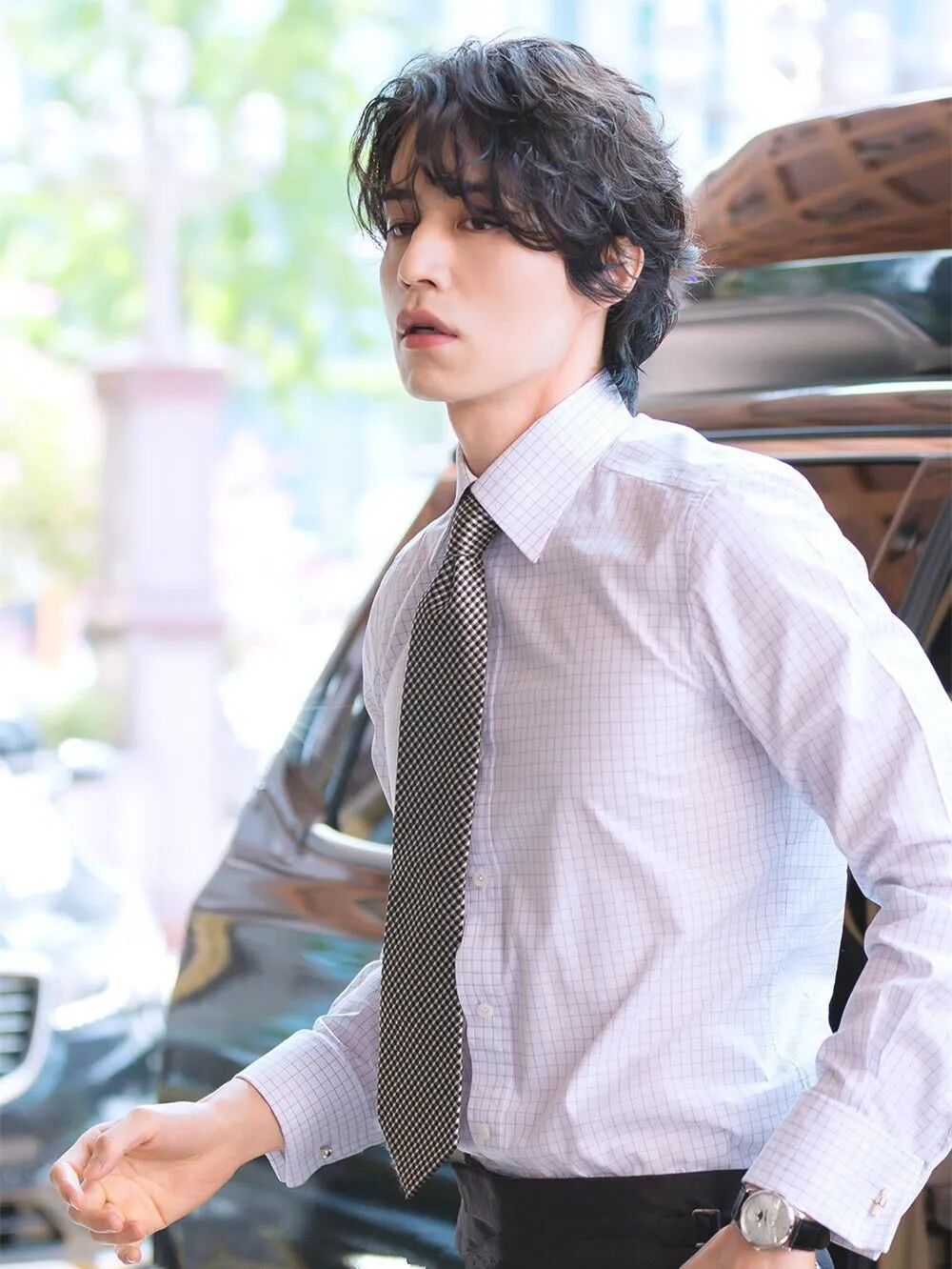 李栋旭会用白衬衫和领带加持,穿出商务范儿,用来应对非常正式的场合。