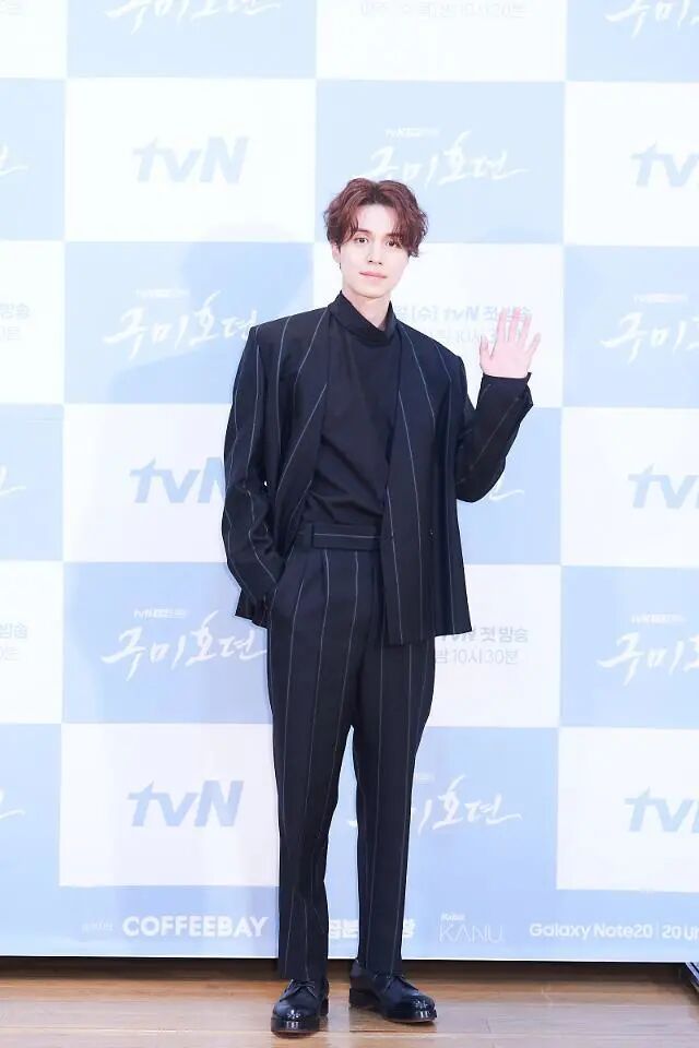 穿上全套的西服,造型散发出成熟男人的魅力,就这谁顶得住啊?在《九尾狐传》发布会上,李栋旭选择了一套宽竖纹款式,整体将西服的严肃感削弱了,中高领内搭又让真个造型更年轻。