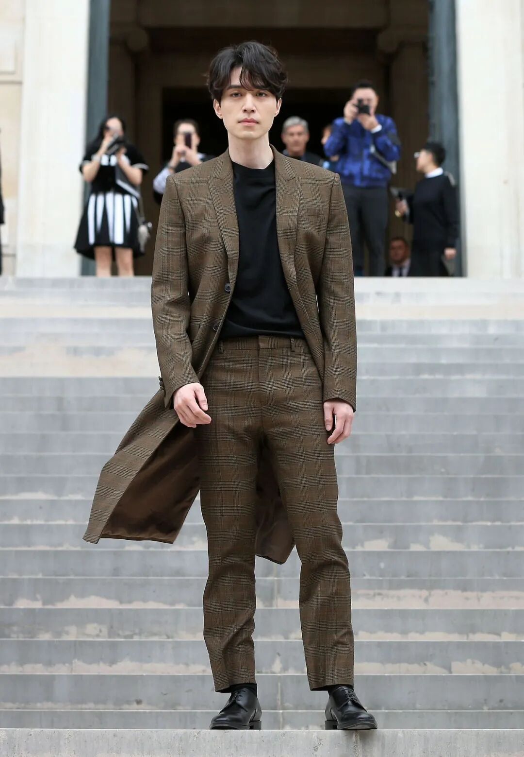 整套的西服,尽量避开太严肃的皮鞋,像李栋旭一样搭配街头感十足的小脏鞋,一下就减龄、日常不少。