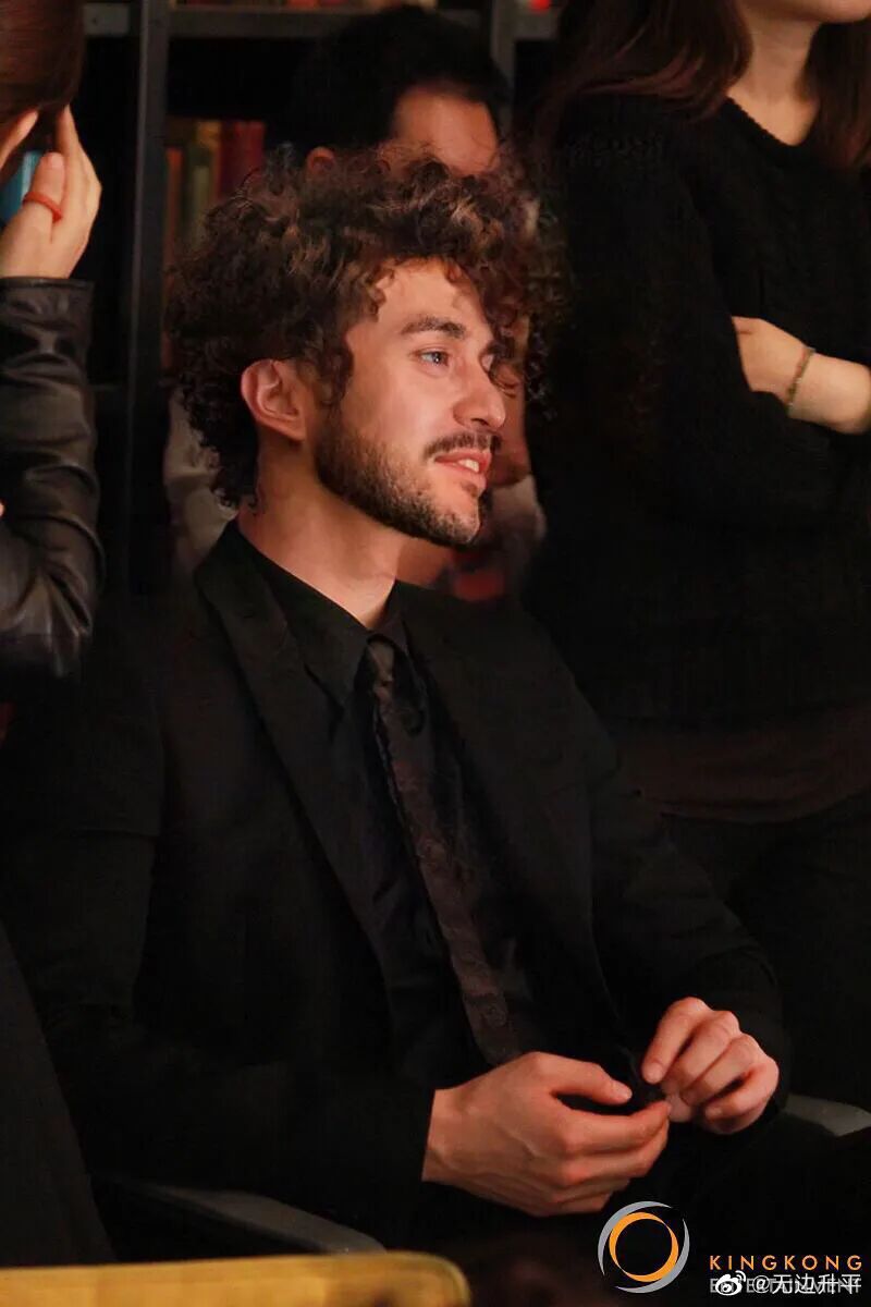 再普通不过的白色衬衫,带了飘带设计以后,配上他的浪漫卷发,突然有了贵族feel。