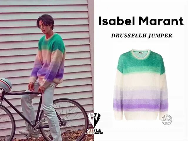 针织衫是暖男半永久选款,李栋旭没有选择稳重的黑白灰基础色系,依然喜欢色彩斑斓的款式来增加可看性。