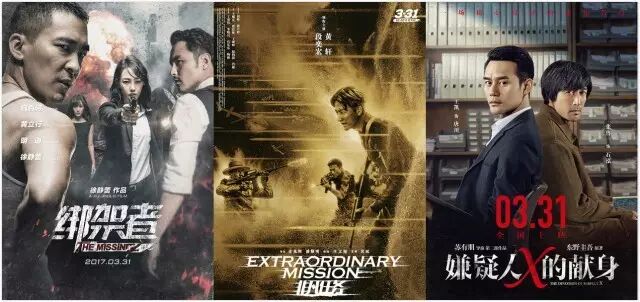 《绑架者》《非凡任务》《嫌疑人X的献身》三部热门电影同时上映,