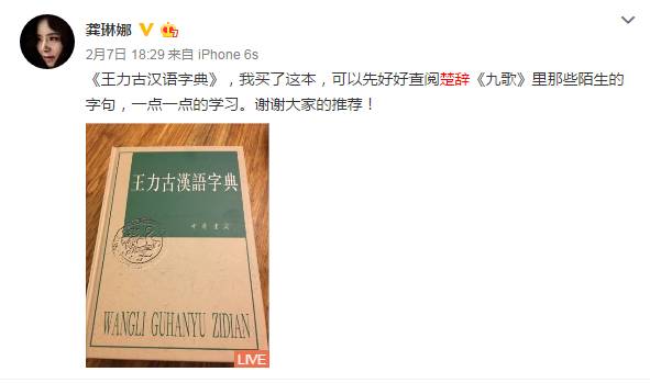 为了更好地阅读楚辞、唐诗,她向微博上的网友请教,并购买了《王力古汉语字典》,帮助理解这些难懂的诗词。