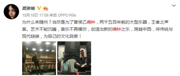 最近,她又去了一趟随州,只因随州是曾侯乙编钟的出土地,她以惯有的宏大叙事口吻在微博上写道: