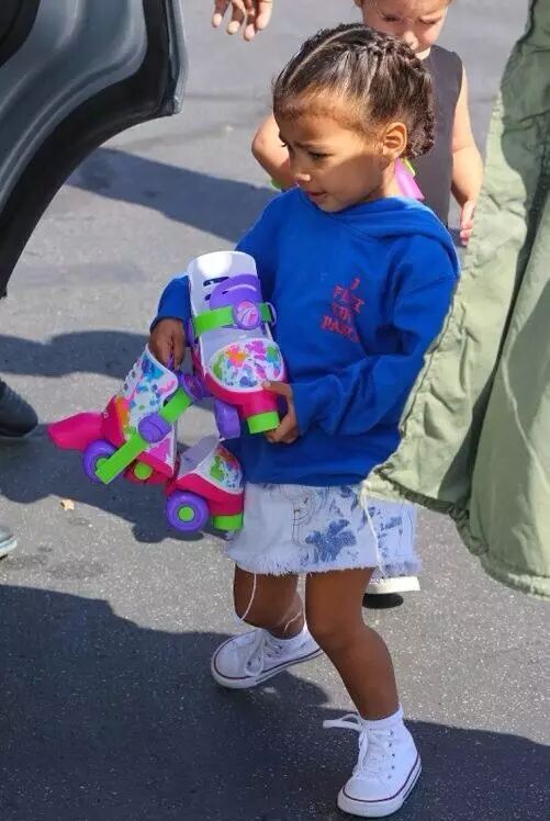 像苏瑞这么大的小姑娘好像都特别喜欢溜旱冰,她的小裙裙来自Barneys的小礼服,以及 Bladerunner Youth旱冰鞋。菠萝的闺女也准备幼儿园上一年去学学溜冰~~