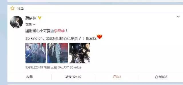 活动结束后,蔡依林也在微博写道:“谢谢暖心小可爱李易峰 So kind of u 如此把姐的心也挖走了! thanks”表示了对李易峰的高度赞赏,wuli峰峰如此优秀的品质不仅能让路人立马转粉,连明星也不在话下哦!