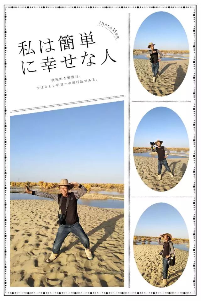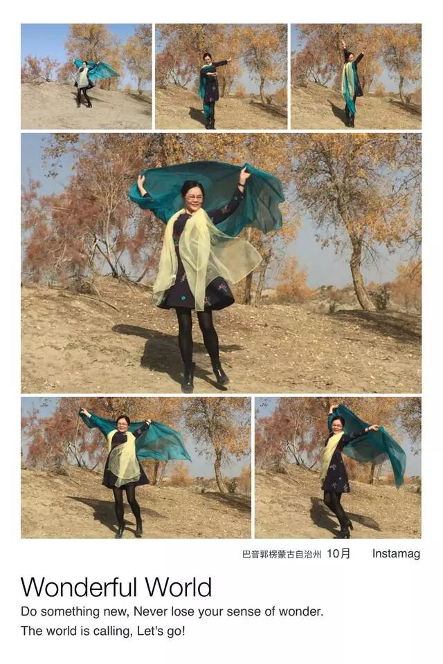 好友陈萍说:“胡杨如大漠不死的灵魂,在生生死死的轮回中依然固守着脚下的大漠。胡杨是奇迹,是西部人战胜恶劣生存环境,千百年奋争不息的精神。胡杨是希望,是当地牧民生命的组成部分。没有了胡杨也就没有了对胡杨的依恋、挚爱与追求。走近胡杨林,你会发现胡杨林犹如一座天然艺术宫殿,它盘根错节,千姿百态,美丽而独特。胡杨,有的苍劲、有的秀美,有的如百年佛塔昂然挺立,有的如妙龄女子妩媚多姿。在秋天里,胡杨叶会变得金黄透亮,耀眼夺目,精彩绝伦,美丽无比。”