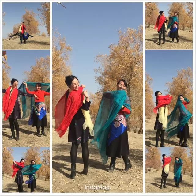 今年十月下旬,记者从广州返回新疆探亲,正赶上“醉美”胡杨炫彩绽放的时节。应好友王同根、张北姝、陈萍、沈培仙的安排,我们一行五人自驾游,“奔着”看“醉美”胡杨的目标,前往新疆尉犁县的胡杨林保护区“罗布人村寨”观赏胡杨林的美景。好友张北姝说,“胡杨是一个神奇与多变的树种,春夏为绿色,深秋为黄色 ,冬天为红色。同时,她也是一个美丽的树种,苍龙腾越,虬蟠狂舞,千姿百态,美妙绝伦。更是一个坚强的树种,为大漠而生,为大漠而亡,活着一千年不死、死后一千年不倒、倒后一千年不朽。值得一提的是,胡杨是中亚地区唯一适合生长的乔木,它是大自然漫长进化过程中幸存下来的宝贵物种。它妩媚的风姿、倔强的性格、多舛的命运激发人类太多的诗情与哲思。古往今来,胡杨已成为一种精神而被人们所膜拜。”