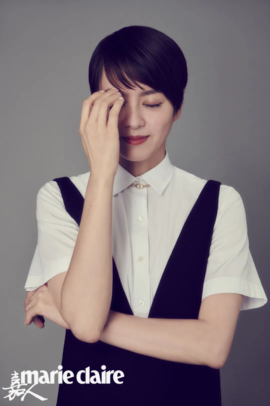 白色短袖衬衫、黑色深V背心裙 均为DIOR