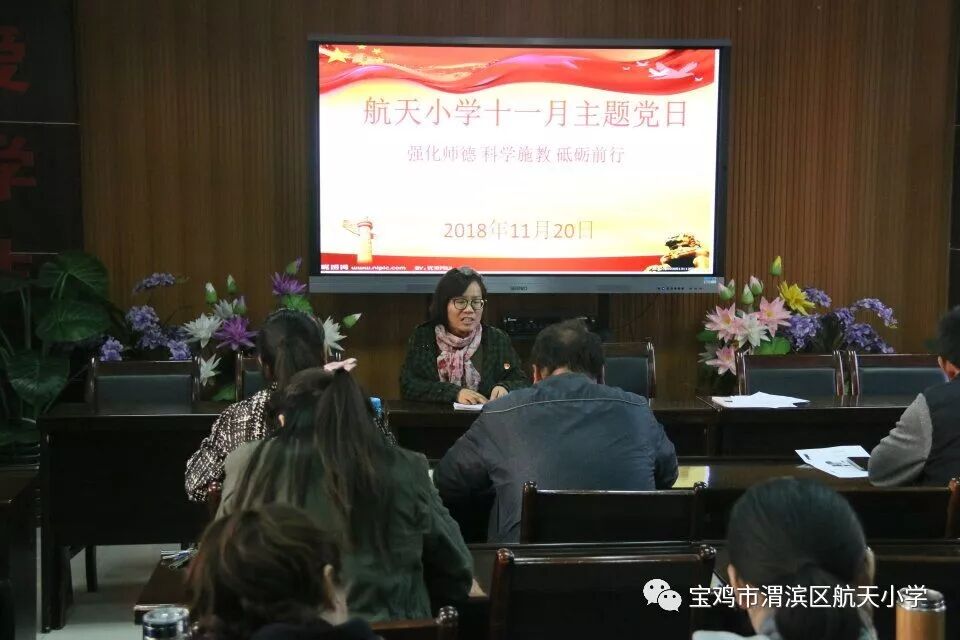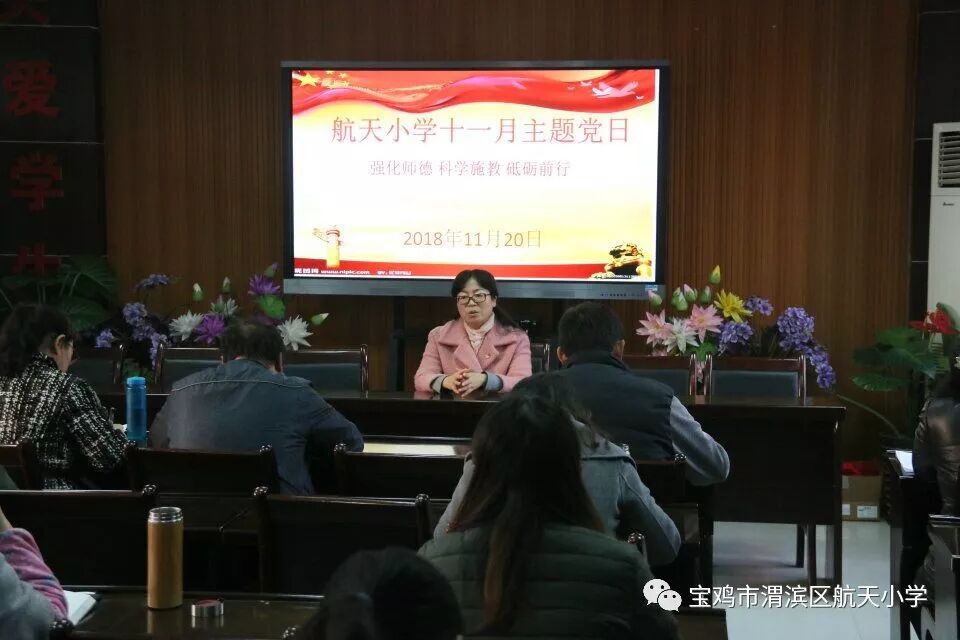 为了响应区局党委开展“爱岗敬业做奉献 立德树人建新功”活动,11月20日,航天小学开展了以“强化师德、科学施教、砥砺前行”为主题的“主题党日”活动,活动由支部书记张中田主持。