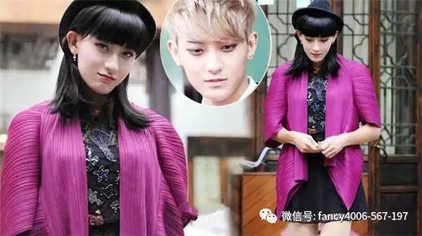 鹿晗和吴亦凡这俩直男还木有女装照,不过粉丝都给他们P过图,也是美的啊~鹿晗女装照长这样