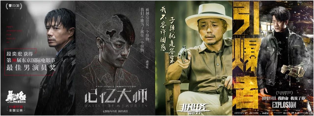 2017年,老段有四部主演的电影上映——《暴雪将至》《记忆大师》《非凡任务》《引爆者》,其中,《暴雪将至》还拿下了东京电影节的影帝。