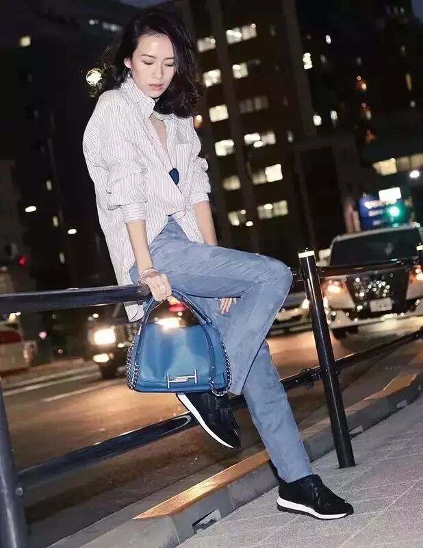▼ 章子怡少有的街拍里选择了简单的条纹衬衫搭配牛仔裤,只塞一半的衬衣露出半截,飘逸又拉风。