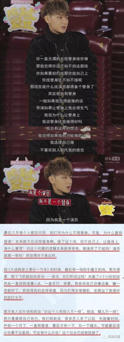在剧组的时候,黄子韬的敬业也是一直被拉出来表扬的地方,现在总是被批评的替身泛滥的现象,黄子韬真的完全没有出现,他自己就说能做的话尽量都自己上。