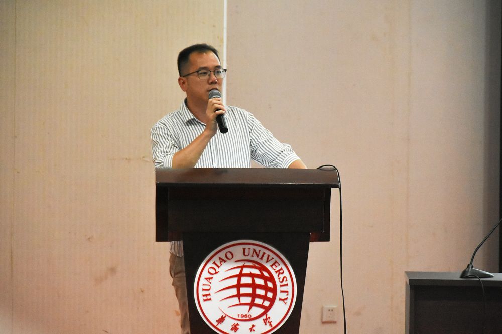 随后余桦老师与在座同学讲述了学风建设和学习生活的相关事项。余桦老师重点强调了安全教育问题,要求同学们要时刻将安全放在第一位,同时他希望19级新同学们能积极适应大学生活并在学习生活中保持健康愉快的心理状态。余桦老师结合16、17、18级学风状况以及挂科情况,总结并指出自由应该建立在自律的基础上,时刻严格要求自己,不要浪费大学的美好时光。