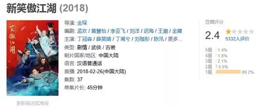 同样正在腾讯视频网站热播的新剧《新笑傲江湖》就是一例,其粗制滥造的剧情,毫不走心的布景,全程崩坏的演员演技等都导致观众大失所望。