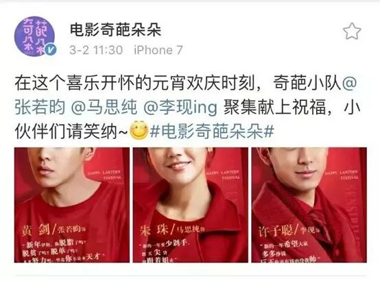 2018年3月2日元宵节当天,电影《奇葩朵朵》送上了主演的元宵祝福,再次炸出了期待已久的粉丝催促电影早日上线。