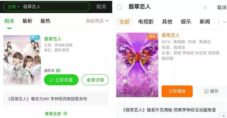 然而在这几个网络视频平台上依然只有《翡翠恋人》当时放出的片花和预告,并没有任何要上线播出的迹象,看起来这部积压两年的电视剧依然播出无望。