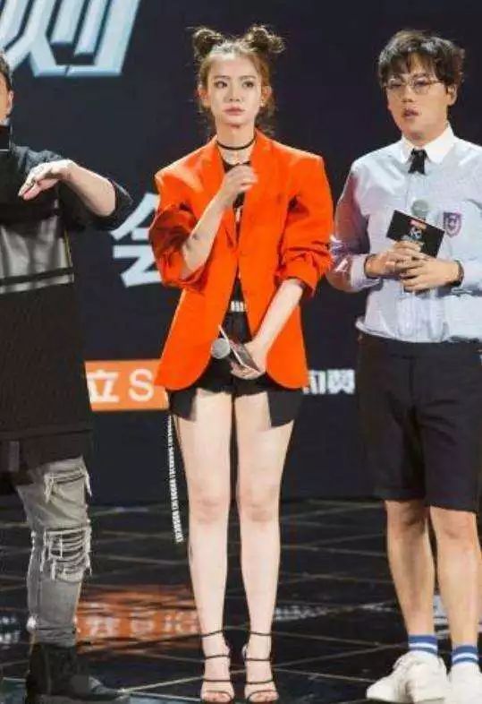但是戚薇也有失误的时候。她最喜欢的发型是丸子头或者半丸子头。这个发型是个减龄神器,显得她少女味十足。有时候一对丸子头,更加显得她小巧可爱。但是橙红色的外套底下,黑色小热裤却遮不住她的小粗腿了。