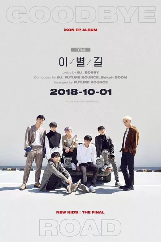 YG娱乐于19日上午11时(韩国时间)通过官方SNS公开了iKON的新专辑《NEW KIDS:THE FINAL》最新团体预告照。在预告中,iKON散发出淡淡的秋天感性氛围。主打曲《GOODBYE ROAD》更是由成员B.I、BOBBY参与了创作,令粉丝们十分期待。