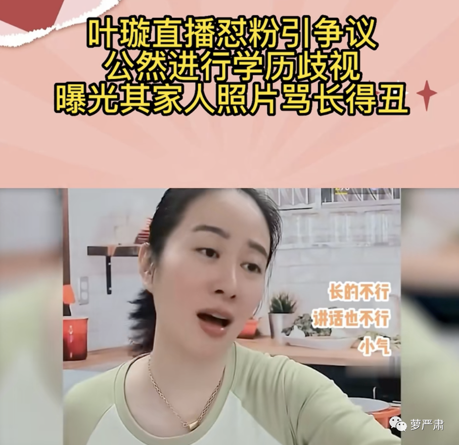 叶璇与见到网民对直播的评价不生气,并说:「都是角色,做Artist,什么都是角色演出,我好多面,扮丑、扮靓、扮老、扮嫩、扮男、扮女都可以,导演可以找我。」
