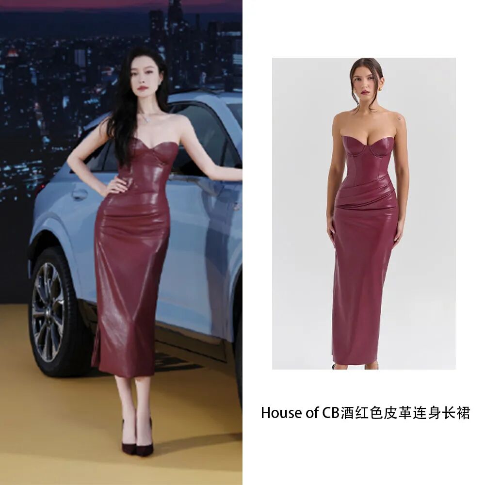 倪妮变身复古女郎,身穿身着House of CB酒红色胸衣式皮革连身长裙亮相活动,身材曲线被勾勒得唯美曼妙,明艳动人。