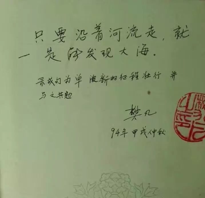 这些问题引导我走向中西新闻比较研究,并最终完成硕士学位论文《访问心灵:中西新闻思维比较研究》。我有时候斗胆在他面前抨击新闻学,坦言这种学问理性能力不足、视野狭窄、诠释力很弱,他也不以为忤,反而启发我分析其中的原因,即“就新闻论新闻”,指导我拓宽学术视野。在这种情况下,他把我引荐给郭齐勇教授,研习中国哲学,侧重于研究新儒家的中西文化比较观,为从事中西新闻比较研究打牢基础。1994年攻读哲学博士学位时。樊老师专门送给我一本《辞源》,希望此书能助我读懂古典文献,并在扉页上写着:“只要沿着河流走,就一定能找到大海”,其殷殷之情,让人倍感温馨。在他的引导下,我就这样执迷不悟地走在了学术的河流边,在不断追求新知的过程中体验到了人生的宁静。