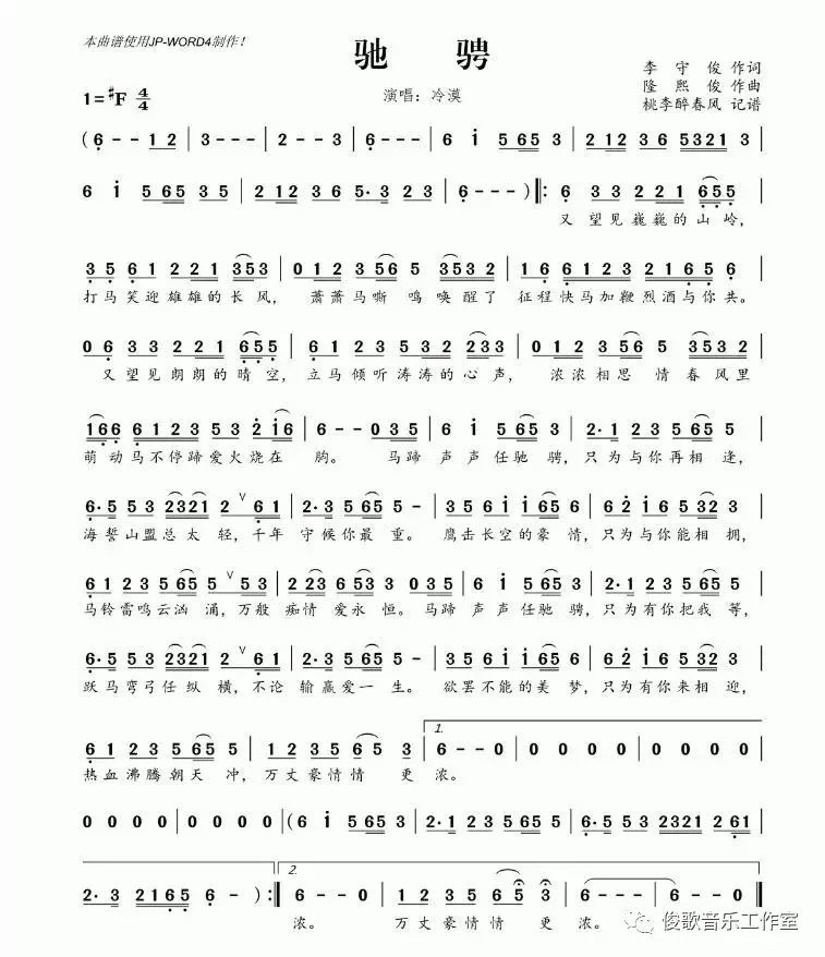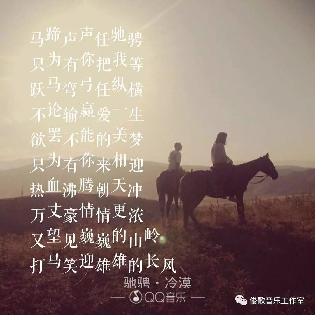 【驰骋】“跃马弯弓任驰骋 不论输赢爱一生”,俊歌为歌手•冷漠•创作的一首豪迈万丈而又痴情万种的爱情励志歌曲,收录于专辑《冒牌音乐精选集》中。