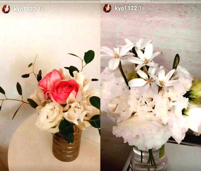 而细心的网友也从照片推测背景很有可能就是宋仲基宋慧乔两人的婚房,因为照片中的花束跟前两天乔妹发的照片很相像,而且百叶窗在乔妹的跨年照片中也出现过~
