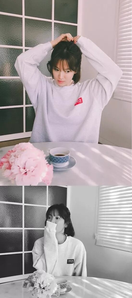 昨天,宋慧乔在ins上发了两张照片,一张是彩色的一张是黑白的。