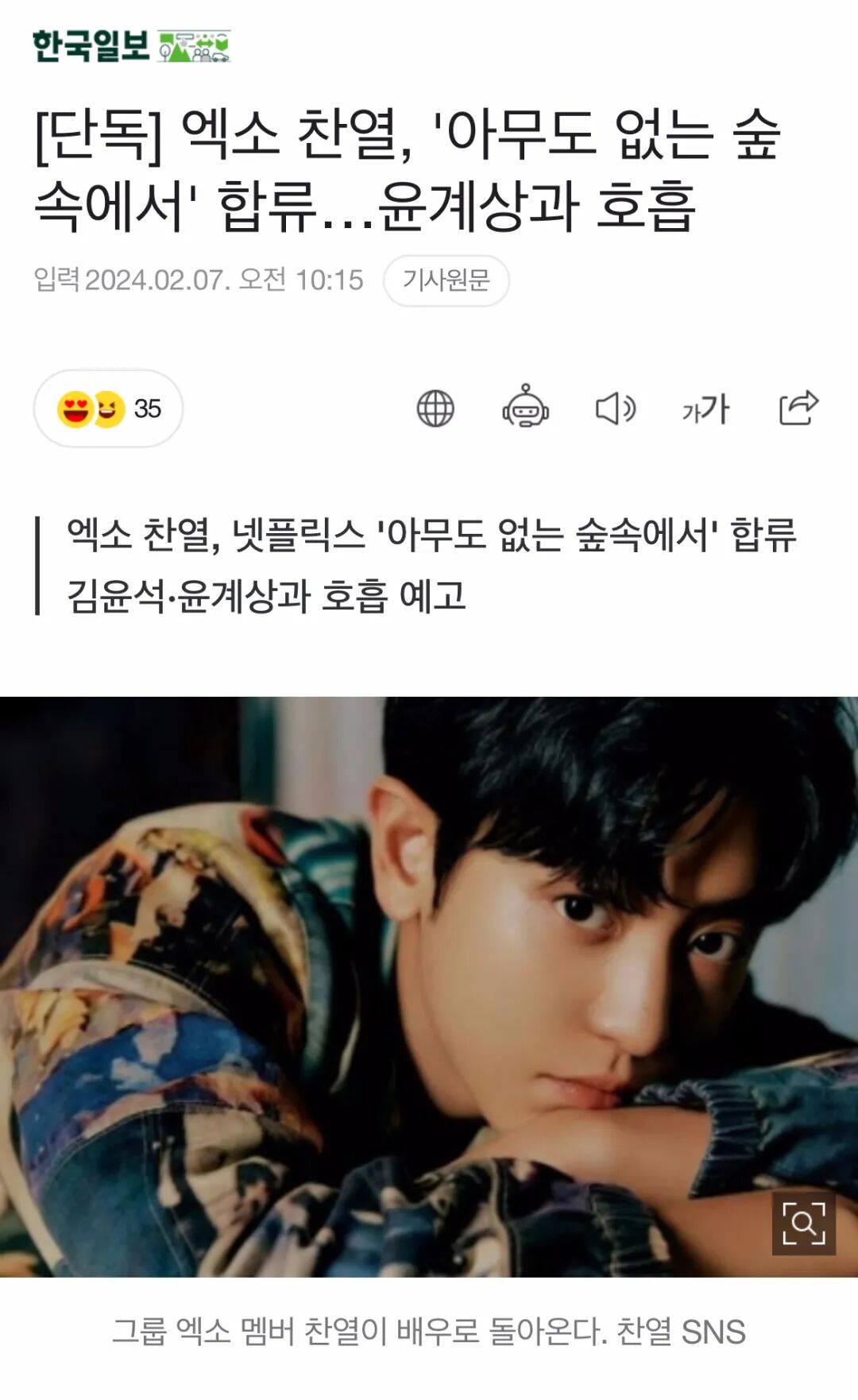 7日,据韩媒,朴灿烈将以演员身份回归,出演网飞新剧《在无人的森林里》,与尹启相合作。
