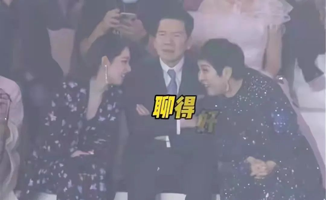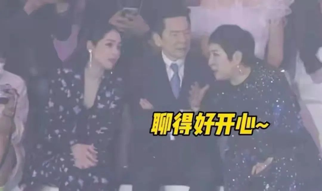 从秀场拍到的照片可以明显看到,向太和郭碧婷从肢体动作到眼神都是展露了两人亲密的婆媳关系。聊到火热的时候,还能看到郭碧婷的身体明显向婆婆那边倾斜,旁边的向华强只能往向太那边倾斜一点。