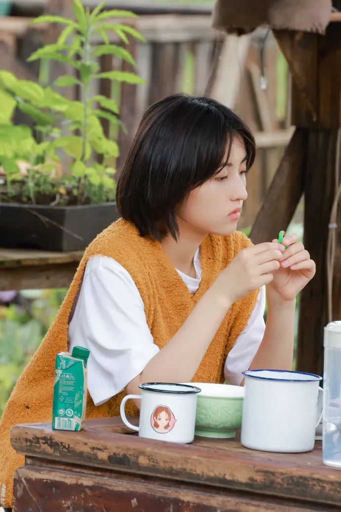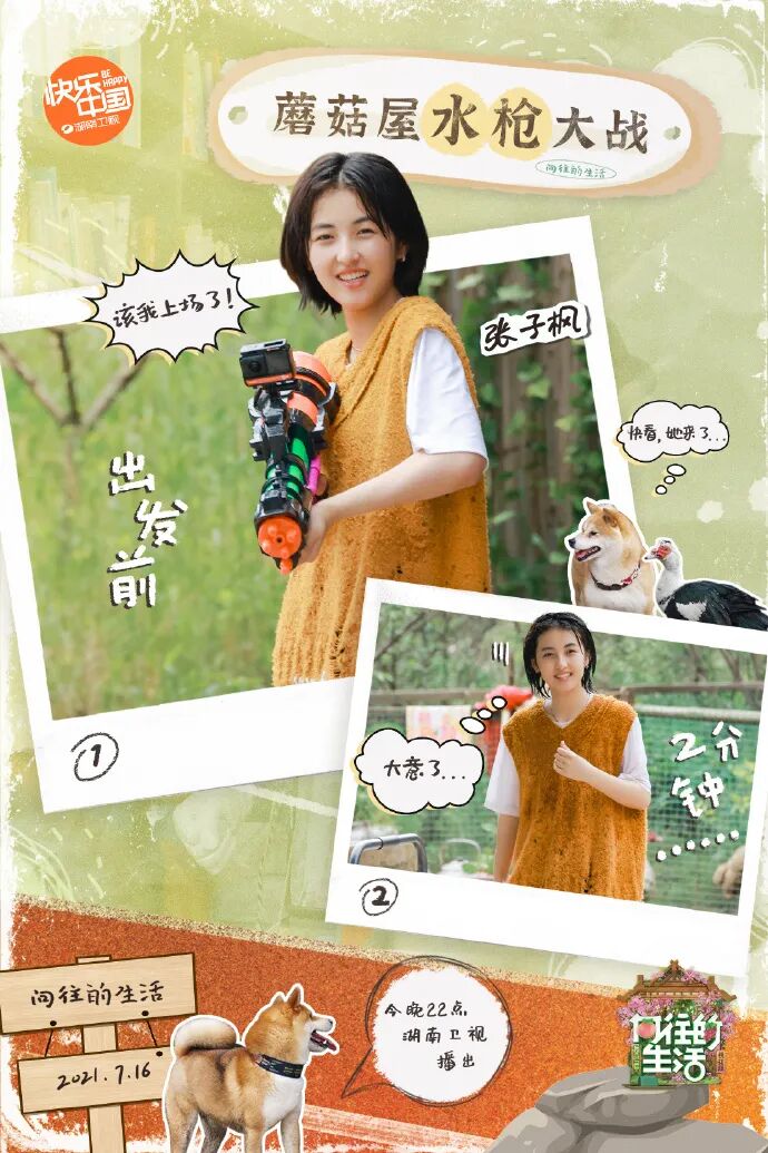 张子枫最近在综艺《向往的生活》中的穿搭,在蘑菇屋慢生活的妹妹的这一身看起来很舒服了,ADER ERROR 毛衣背心内搭白 Tee 和五分短裤,脚踏 Hogan 凉拖,少年感满满~