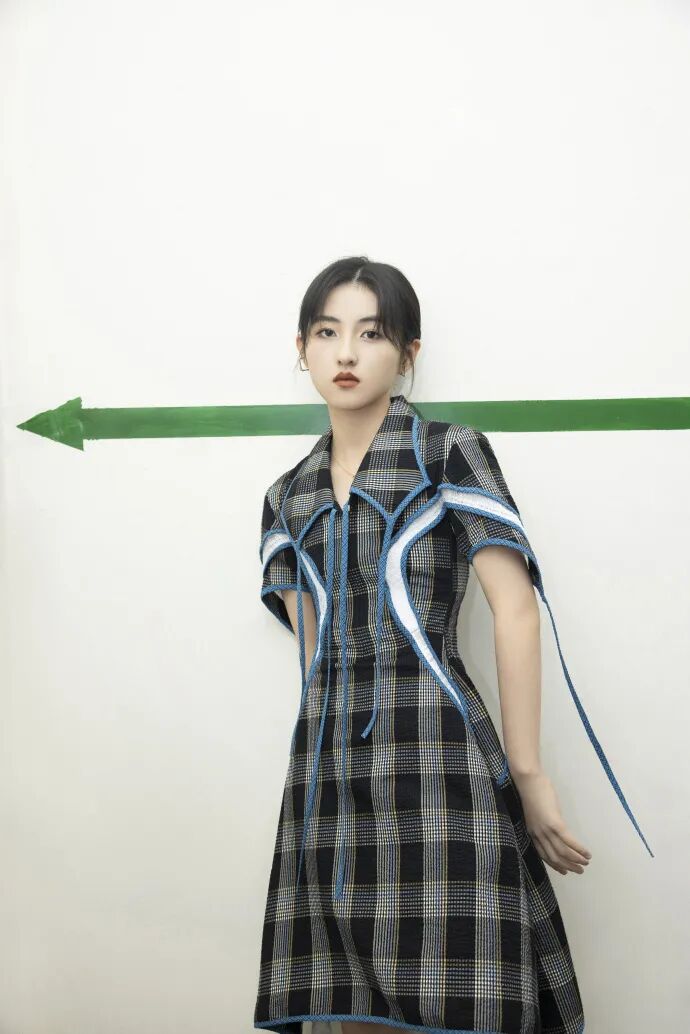 张子枫出席电影《我的姐姐》北京首映礼造型,身穿 Kiko Kostadinov 2021 春夏系列连衣裙和 SMFK 黑色小皮鞋,解构风剪裁的连衣裙很特别,有种邻家妹妹长大了的即视感。