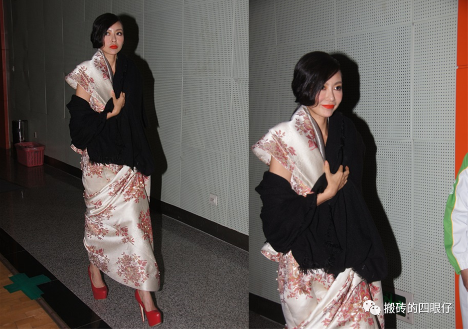 所以黑色服装在正式场合中穿也合适,看巩新亮的穿着打扮,女人味十足,很适合在活动场合中穿,很洋气。