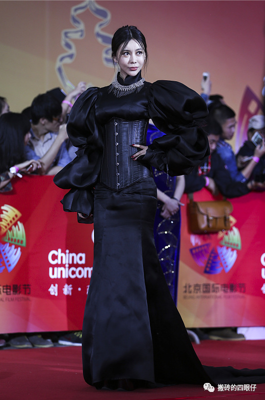 但如果穿这种颜色的衣服出席活动,衣服里一定要有一些设计点和亮点,比如大泡泡袖、腿袖、束腰,都是很有重点和造型的。