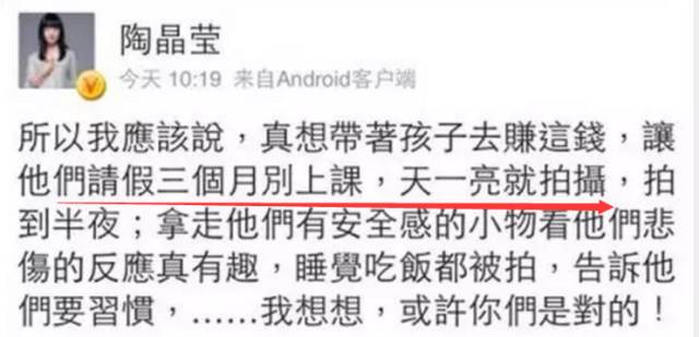 结果节目组直接出来怼她了,说我们根本没有邀请过你们,而且我们的拍摄都是选在周末,不耽误孩子的正常生活和学习,参加节目的嘉宾更不需要利用孩子来赚钱。这脸真是打得啪啪响啊。