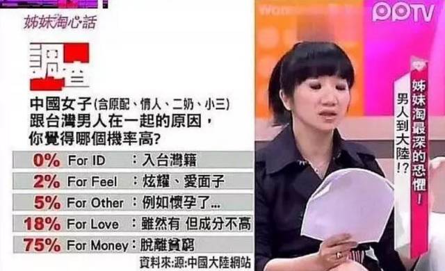 不仅经常让人下不来台,她早前还在节目上diss过大陆,做过一期大陆女生拜金的节目,说内地女生和台湾男生在一起大多数是为了脱离贫困。