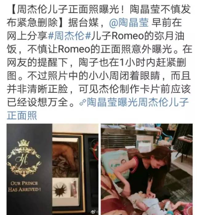原来是陶晶莹去参加小小周的弥月油饭也就是满月酒,晒照分享弥月油饭时曝光了上面的小小周照片。