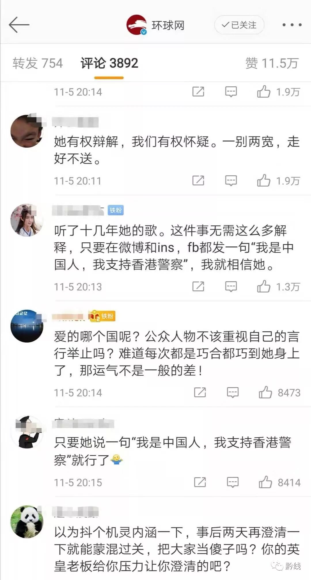 即使在其道歉的微博评论区1.6万条评论中,除了粉丝的力挺,还有更多网民对其道歉初衷提出质疑,认为她是为了人民币不得已而为之,并高喊让她“滚出中国”。