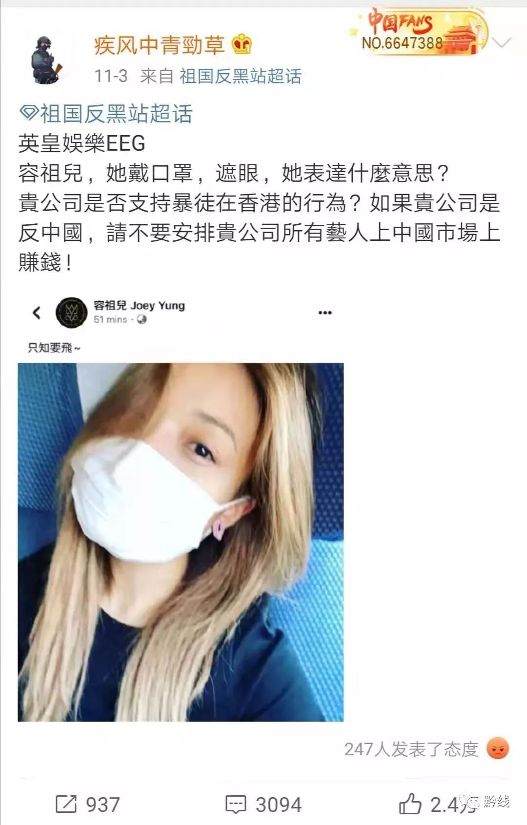 网民为什么在容祖儿亲自道歉后依然不放过她?并不是因为她自己解释的“无心之失”,而是因为她长期以来与港毒眉来眼去,甚至多次发声支持港毒。