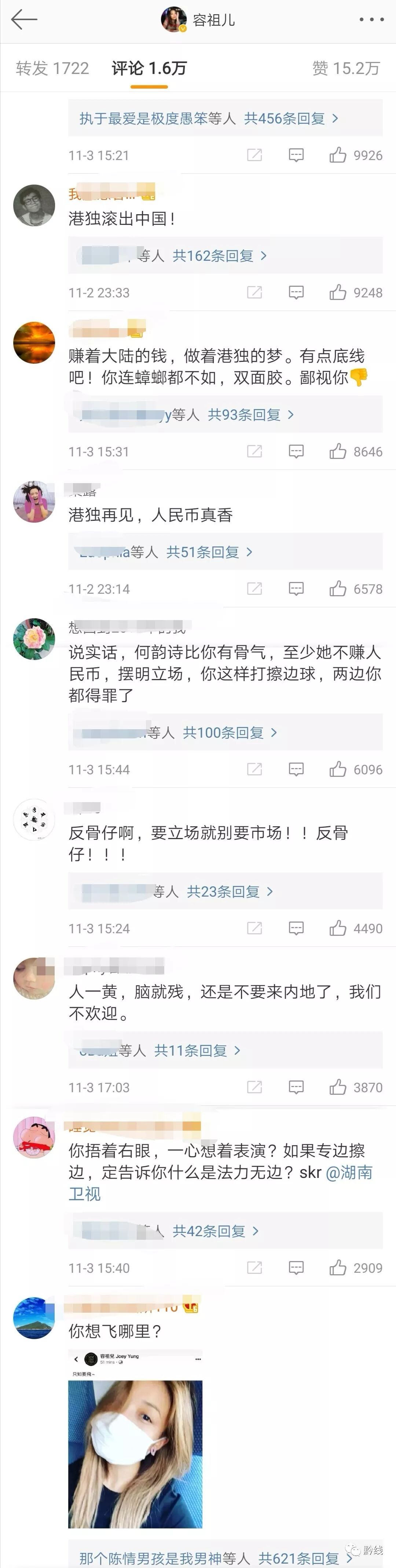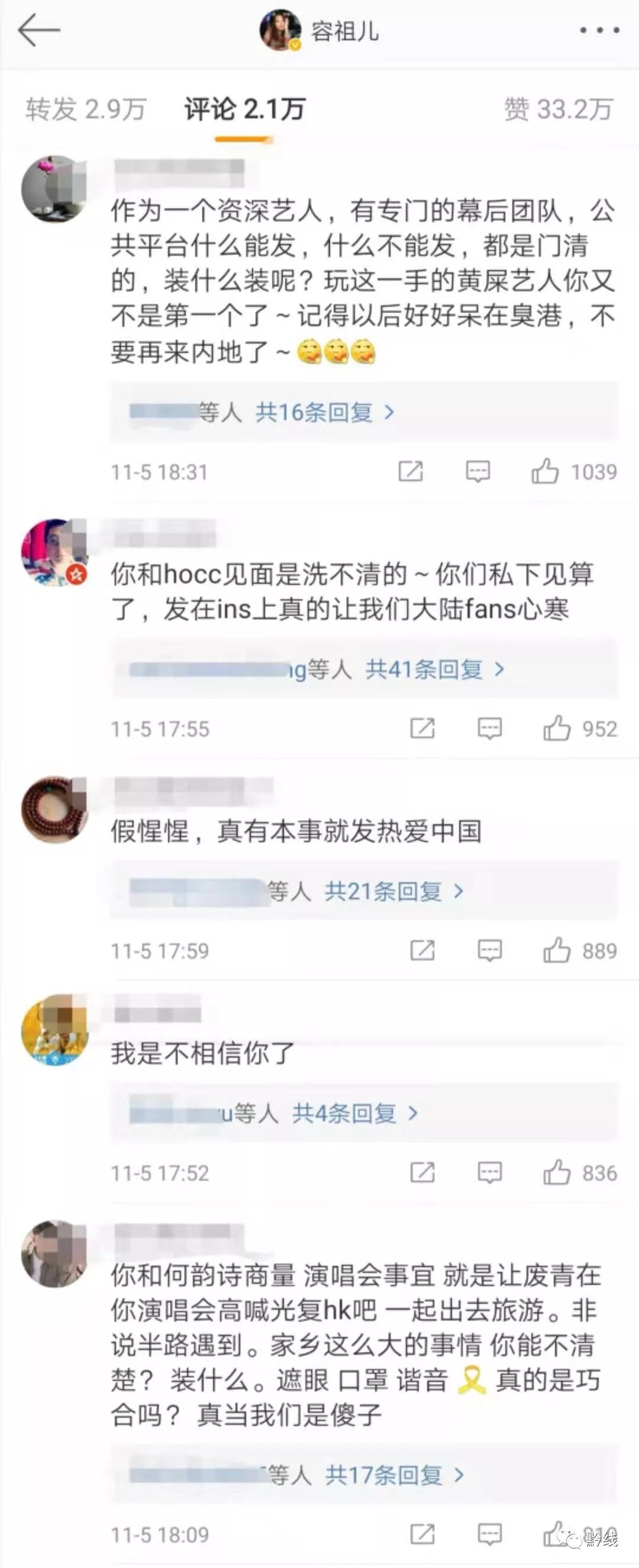 一石激起千层浪,网上对容祖儿的批评铺天盖地。容祖儿新浪微博评论区也随之沦陷。