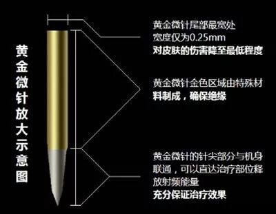 黄金射频微针也称黄金射频,它是将机械中胚层疗法、微针、黄金能量美肤技术结合起来的一种新的战痘、抗皱特效科技,其黄金包裹的绝缘针杆将射频能量精确作用于不同深度皮肤组织,刺激和诱导胶原蛋白重组和再生,并运用点对点超微渗透技术为中胚层输送肌肤所需养护因子,长效构建年轻态构架,最终达到更有效的治疗目的哦。